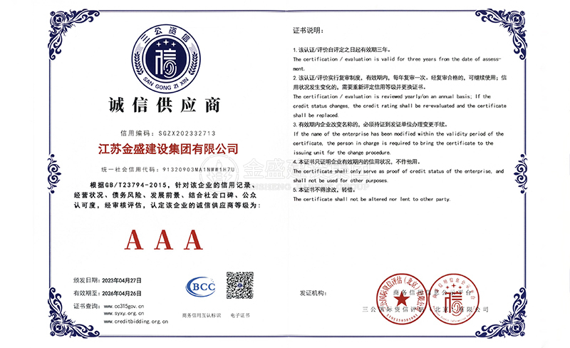 • 2007年江蘇省質量信得過安全穩(wěn)定施工企業(yè)